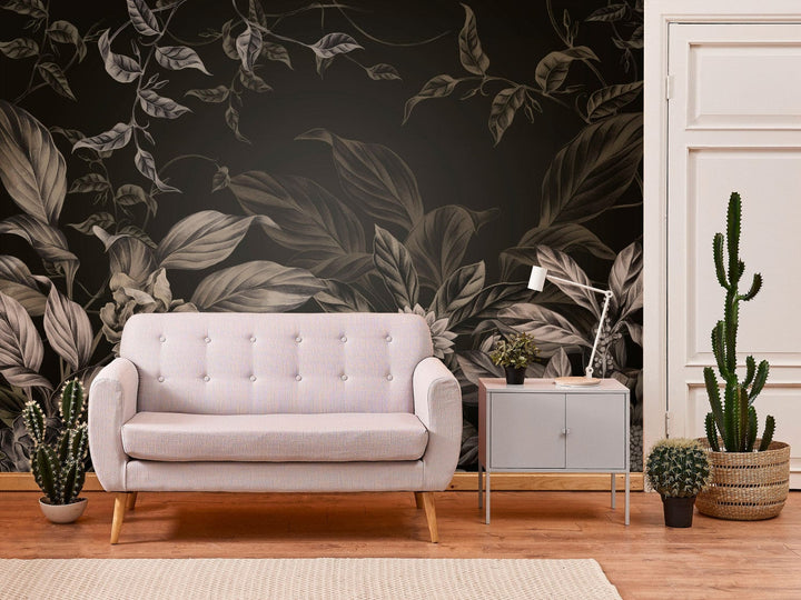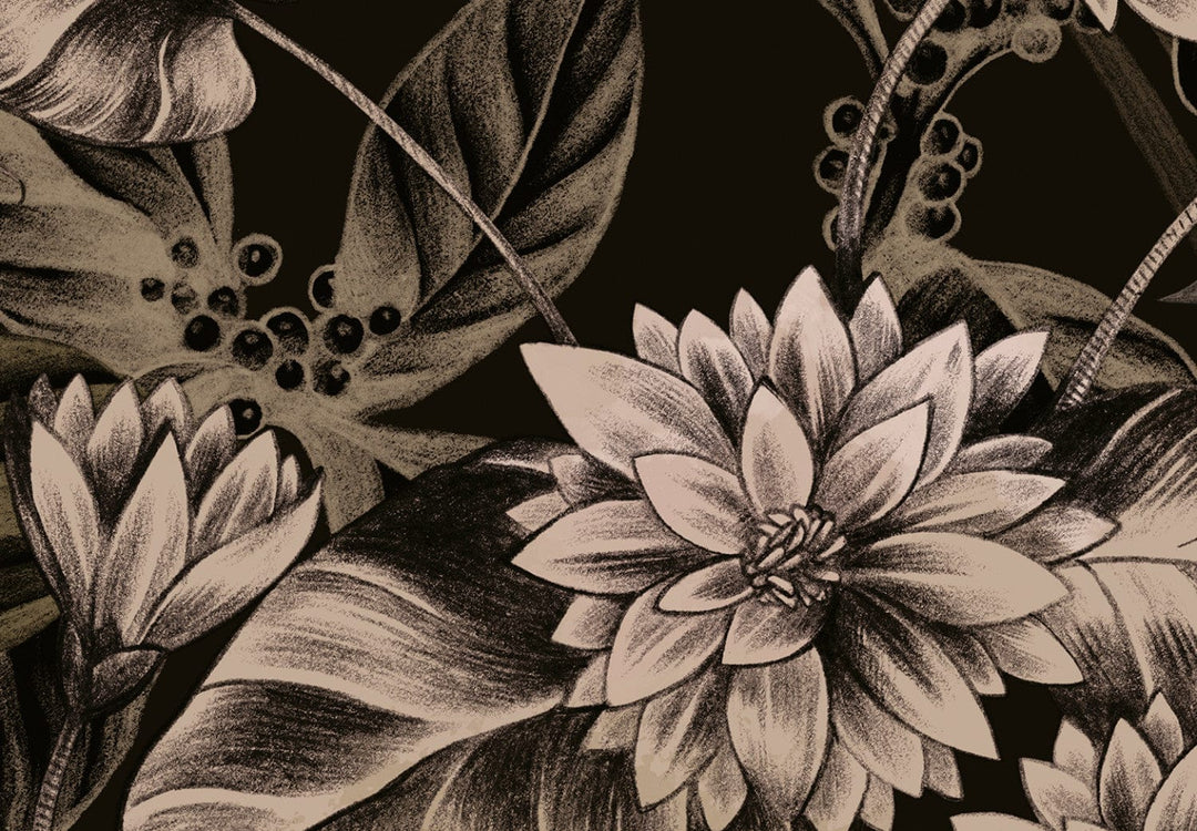 Wall Murals - leaves and flowers in dark colors, 151522