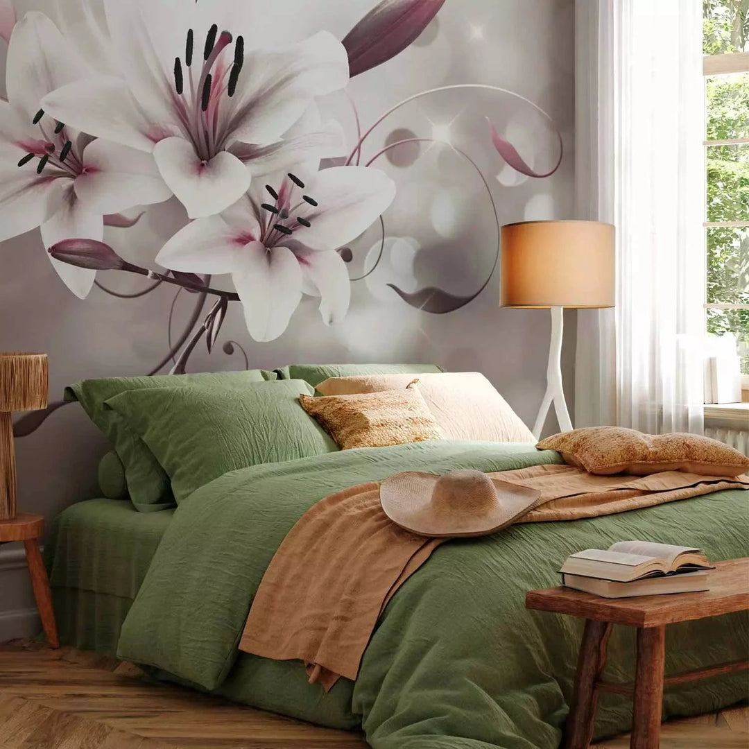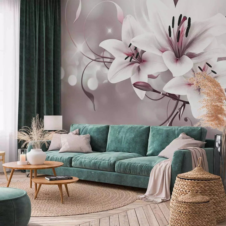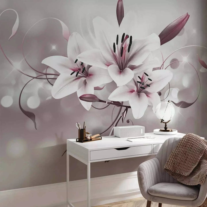 Wall Murals with lily - White lilies on grey background, 64638