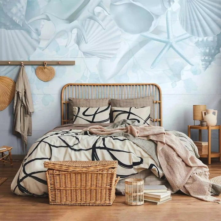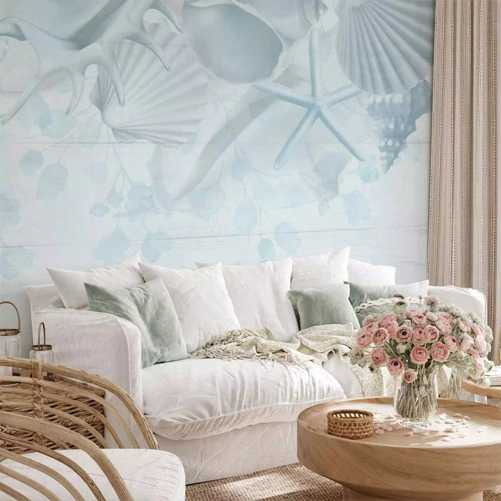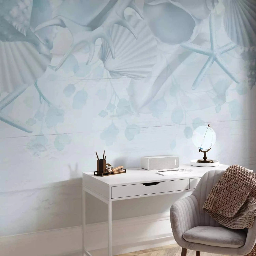 Wall Murals with marine themes - shells on the beach (blue), 143674