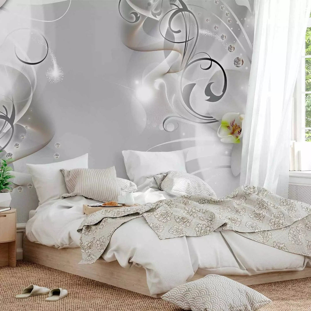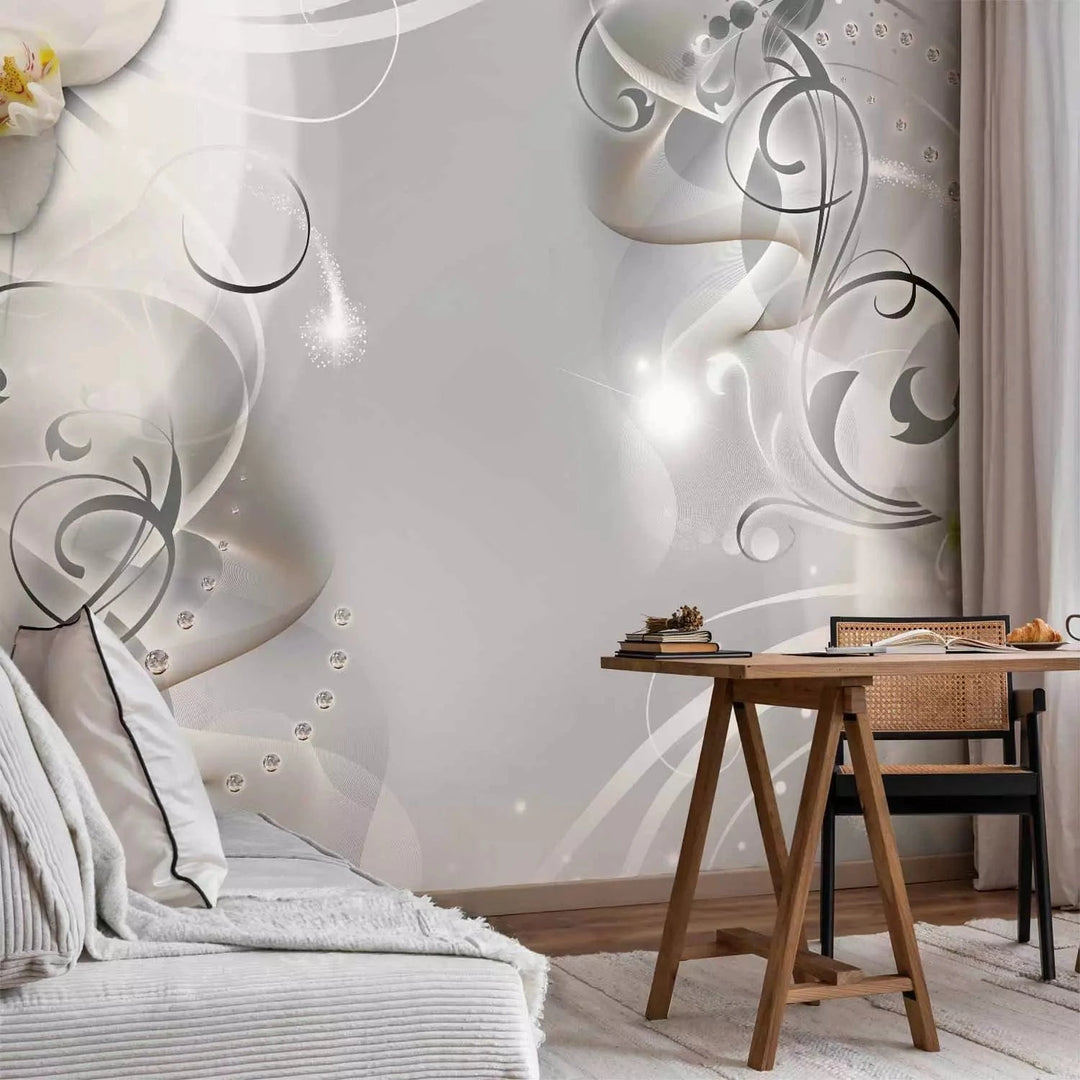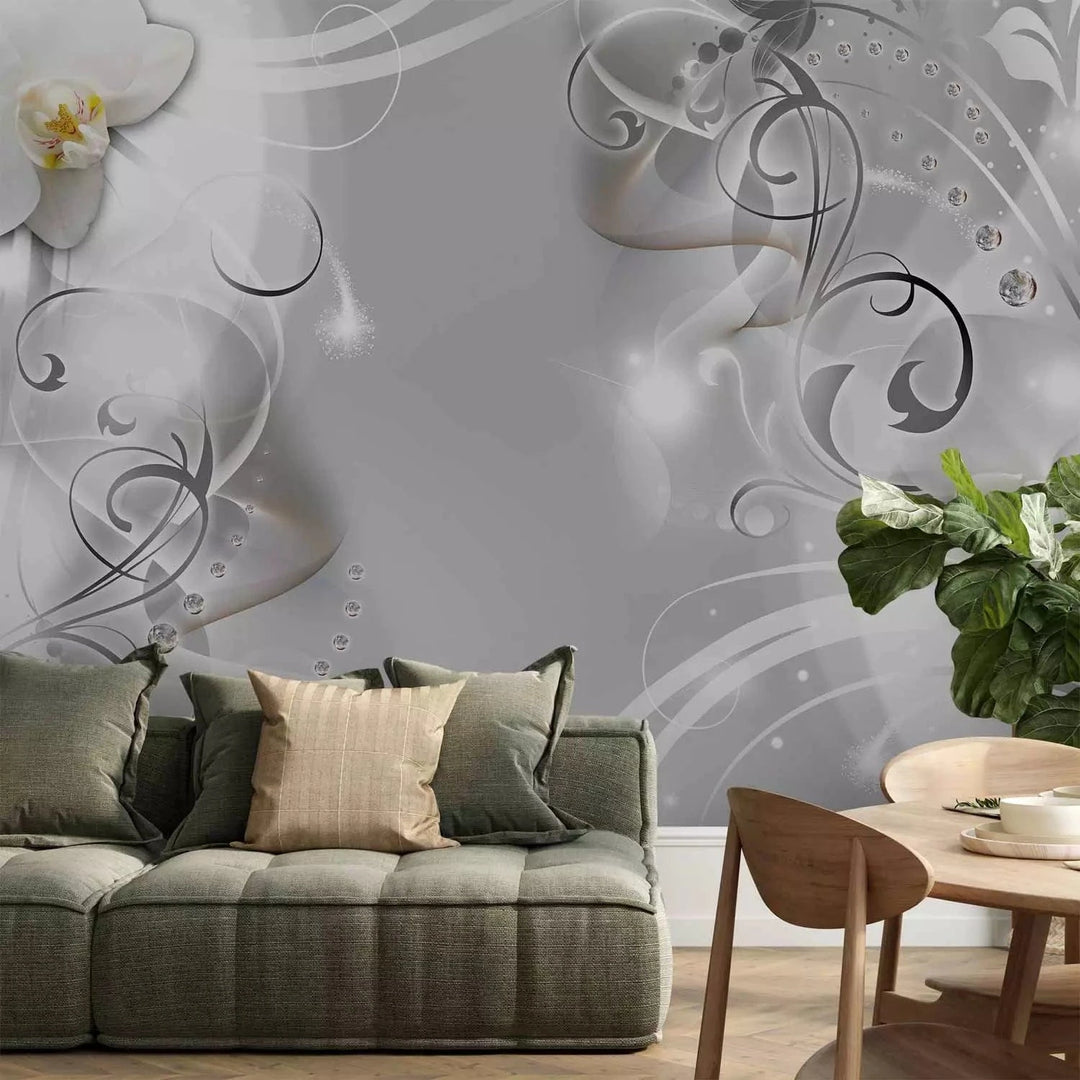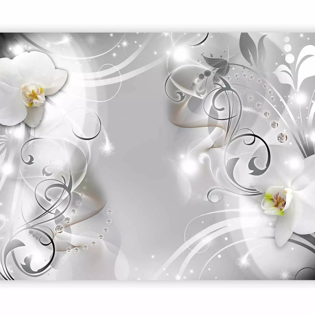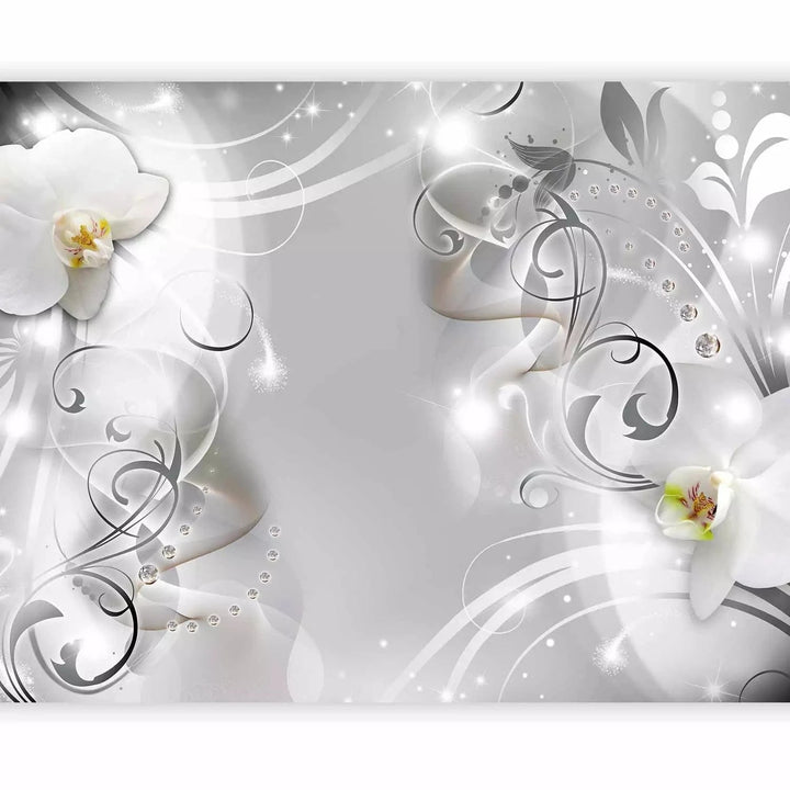 Wall Murals with white orchids on abstract grey background - Two Sisters, 127116