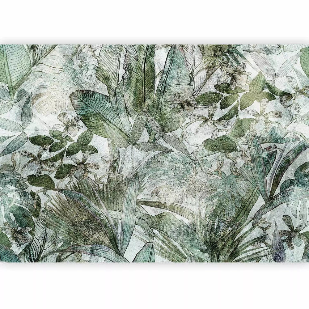 Fototapetes - Eksotiskas lapas – lapu motīvs ar izbalējušu rakstu G-ART