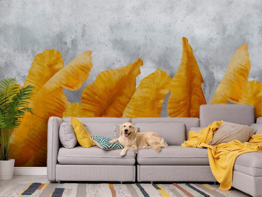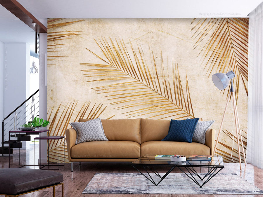 Wall Murals with gold palm leaves on a light beige background, 142730