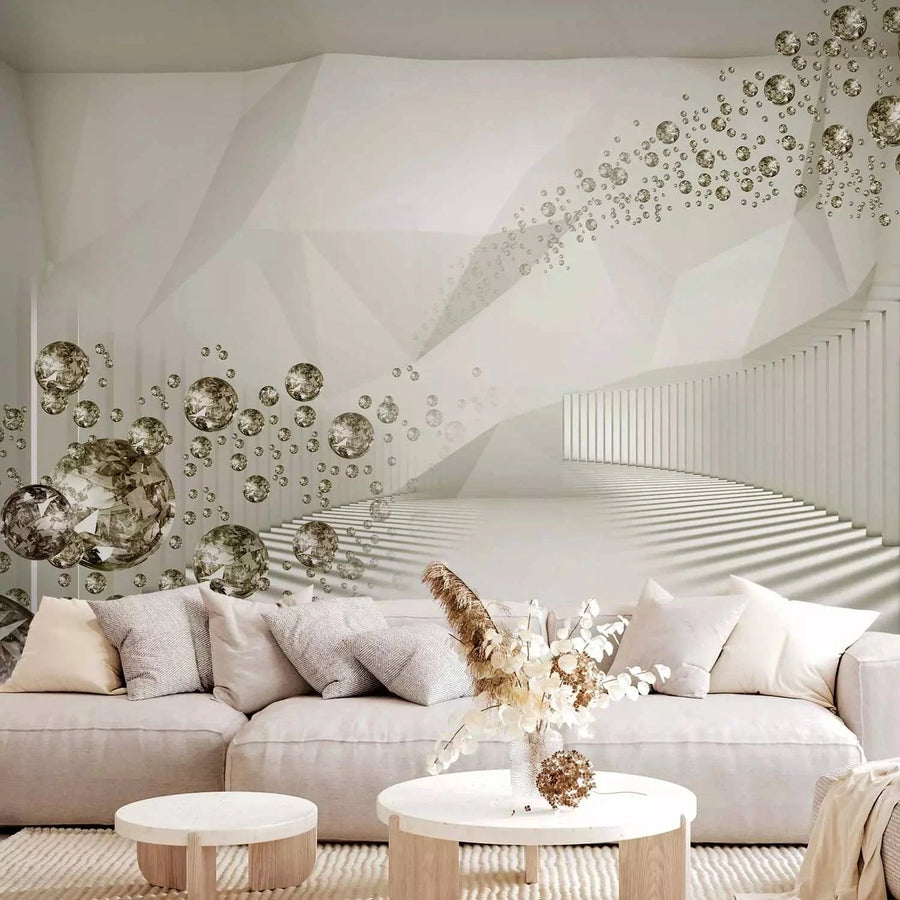 Wall Murals - 3D geometric abstraction with gold diamonds, 63998