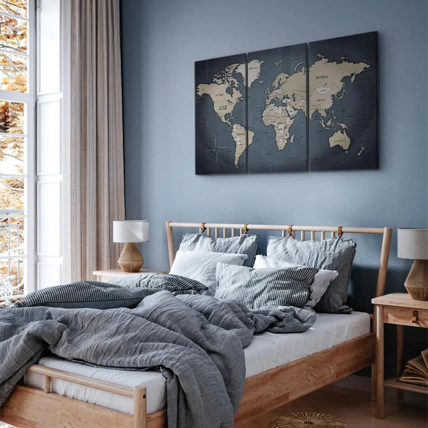 Canvas with world map - Anthracite World, 91918, (x3)