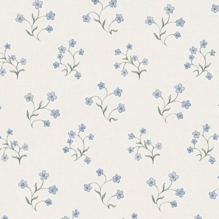 Flizelīna tapetes ar smalku ziedu rakstu: baltā, zilā - AS 390741 AS Creation