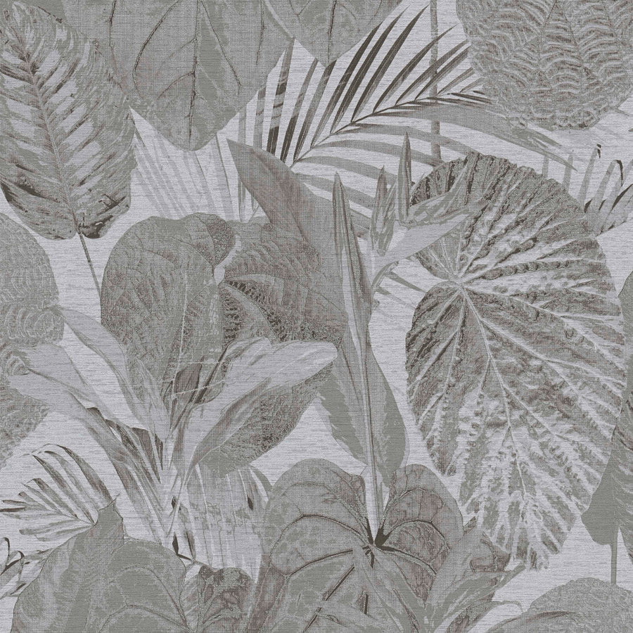 Wallpaper with jungle pattern, matt: gray, 1400523