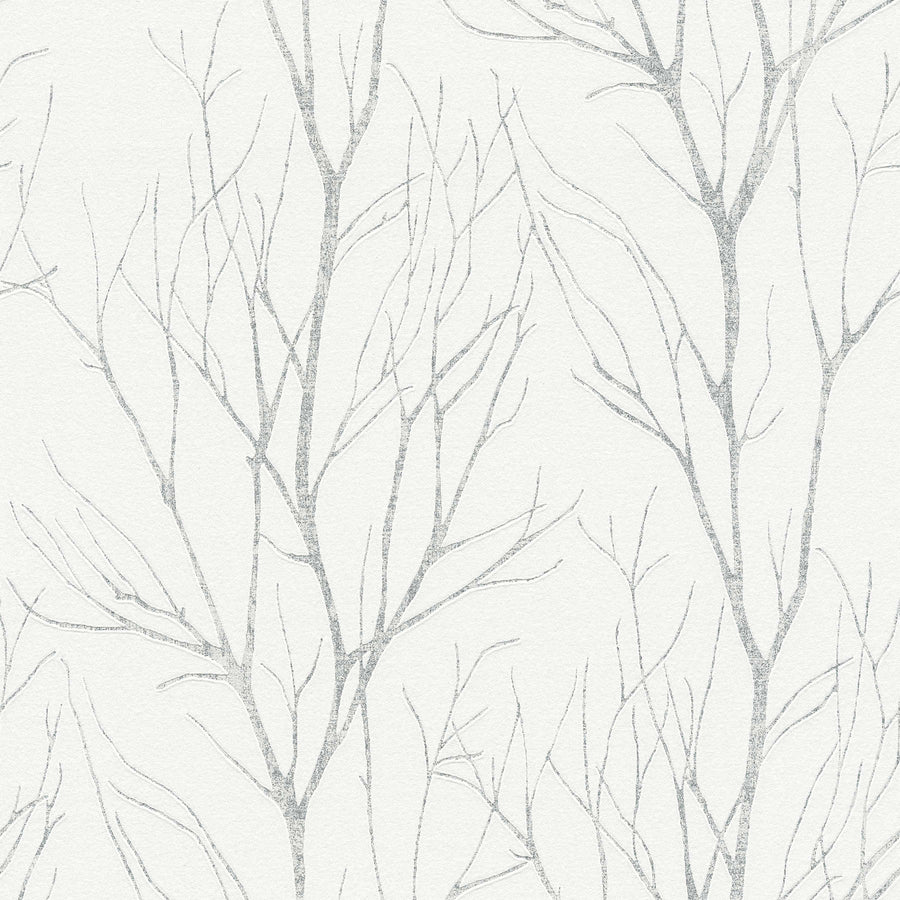 Wallpaper with leaves, white/cream with metallic effect, 3757511