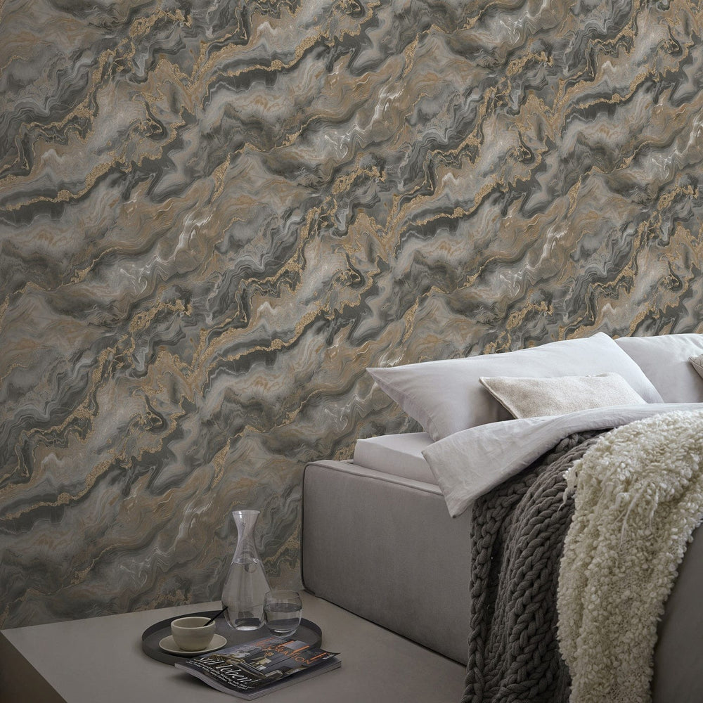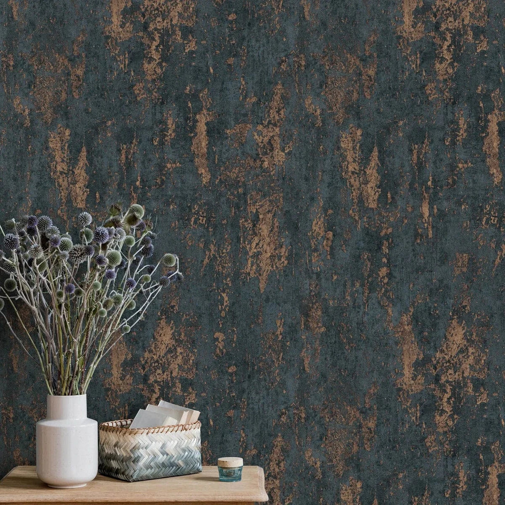 Melnas un bronzas tapetes ar apmetuma efektu greznam un modernam dizainam   Tapetenshop.lv