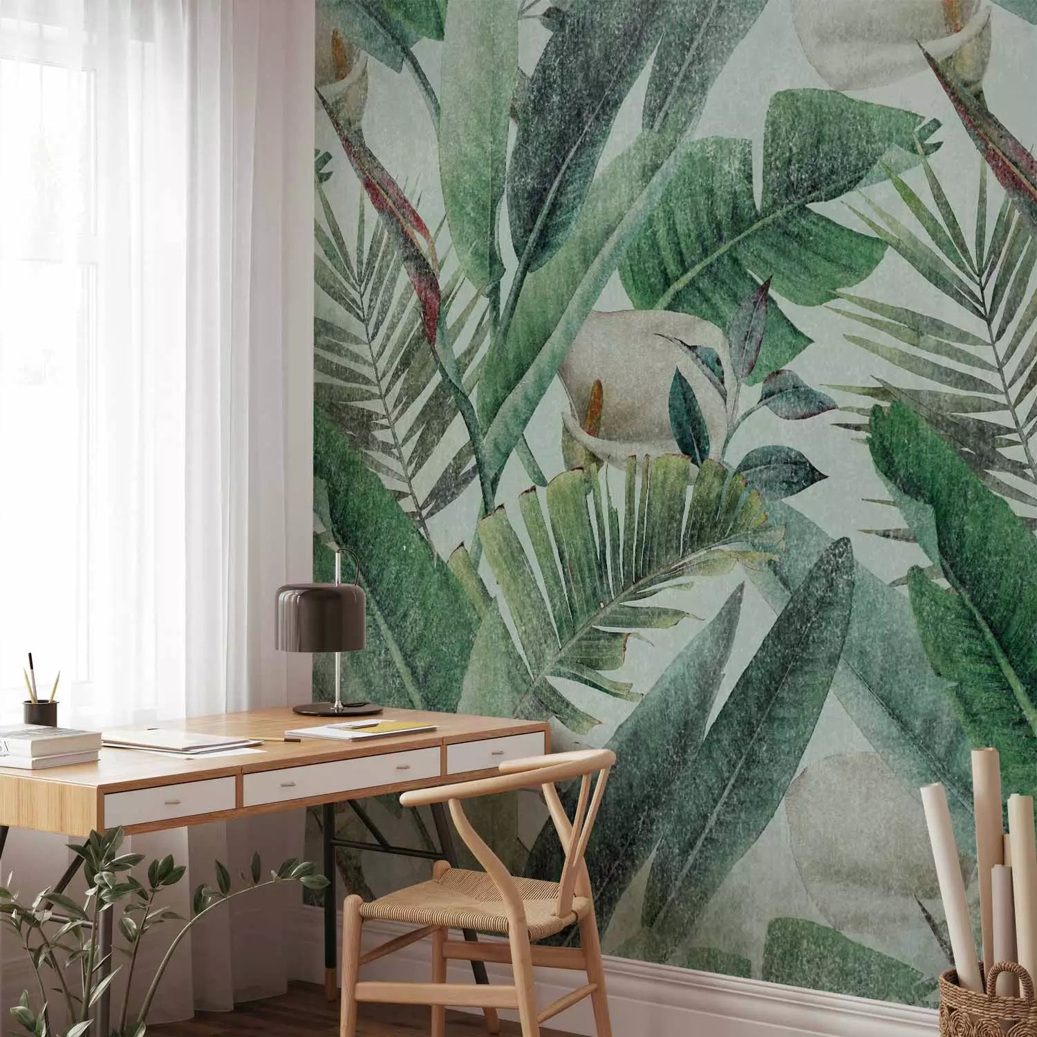Wall murals - Composition with jungle leaves and flowers, 142310