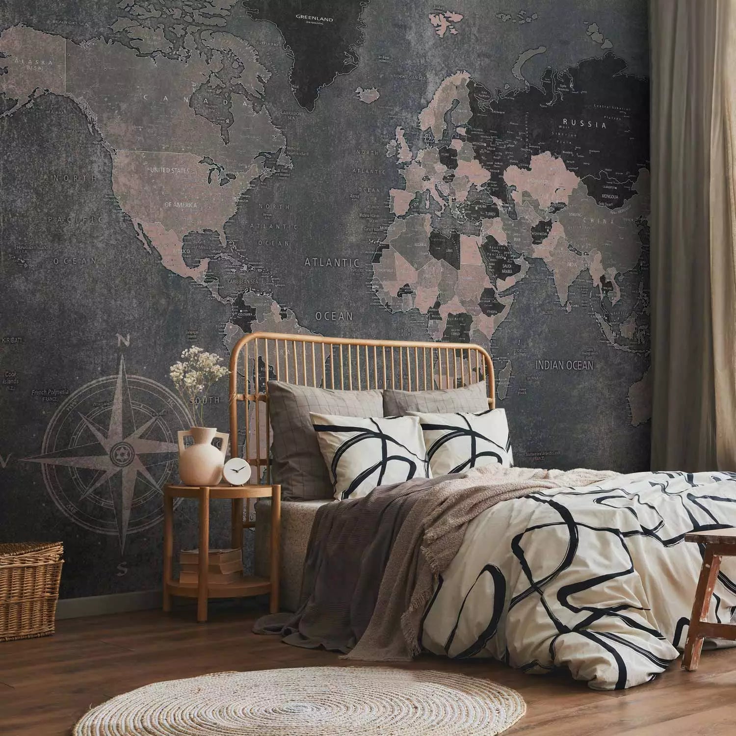 Wall Murals - Continent card on a heterogeneous background with compass in the corner, 91659