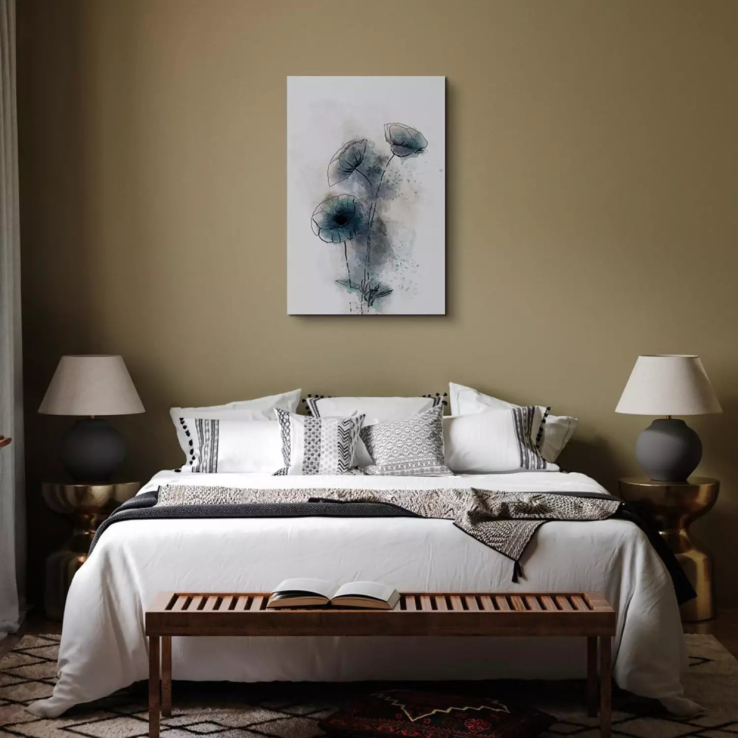 Canva with flowers - abstract blue poppies, 131974