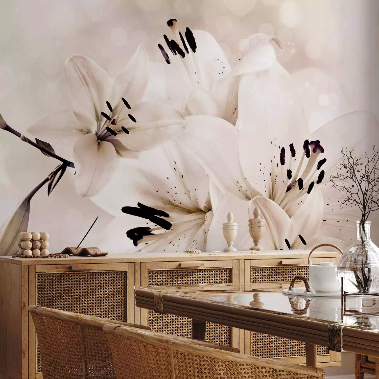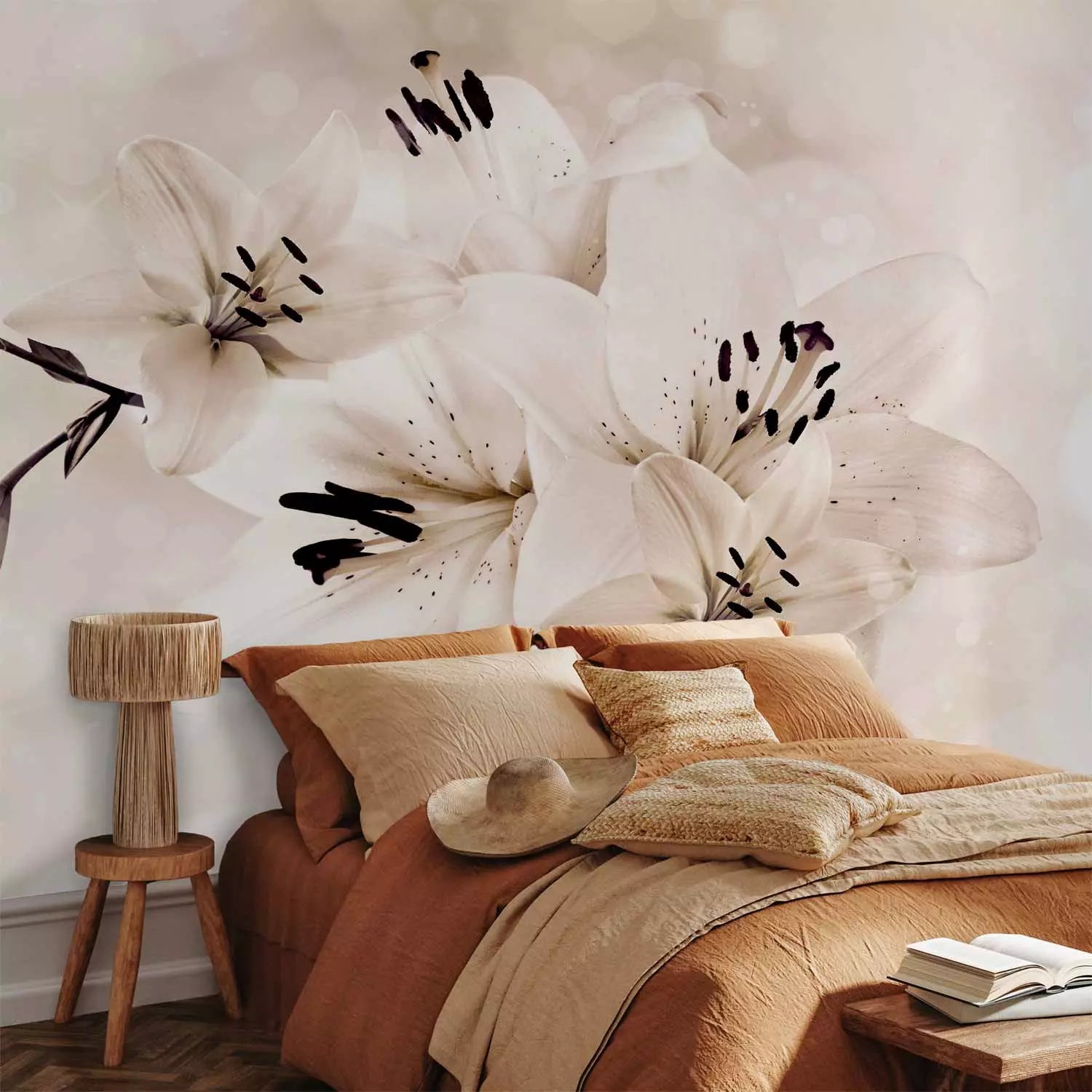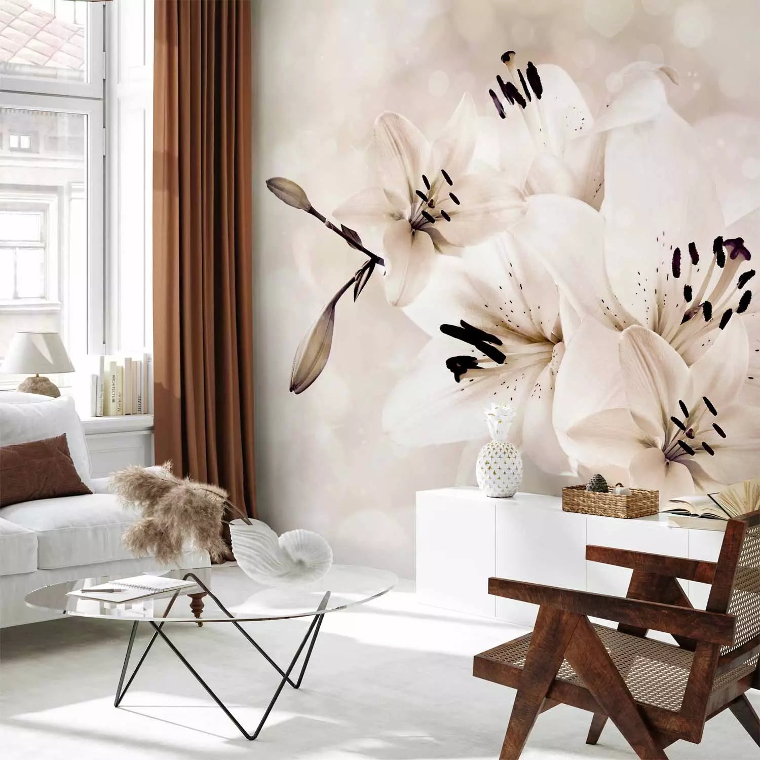 Wall murals - Magical lilies - a gorgeous floral motif on a light background, 142376