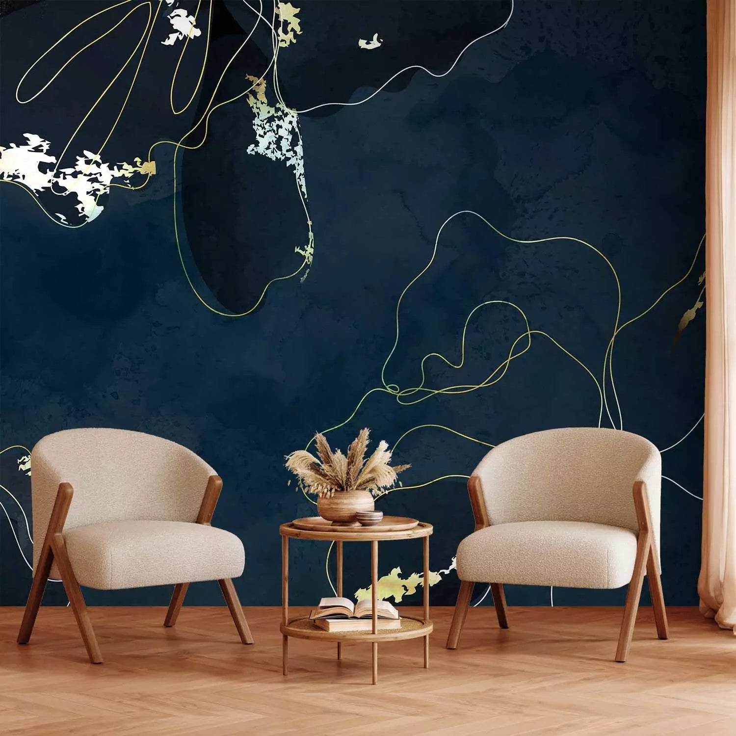 Wall murals with abstract pattern on dark background - Golden Beauty, 142577
