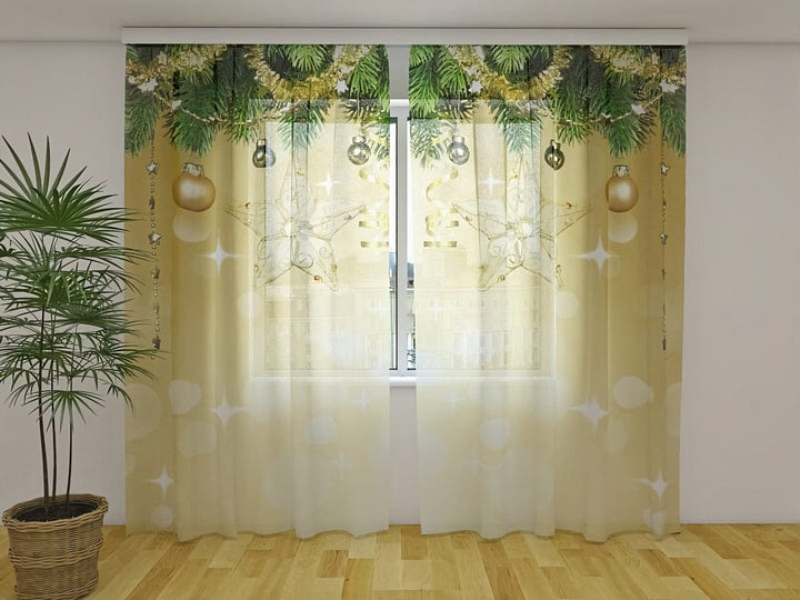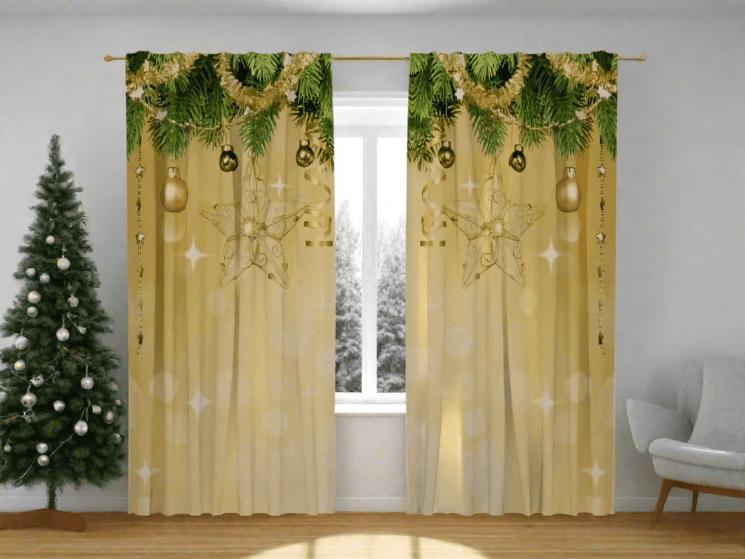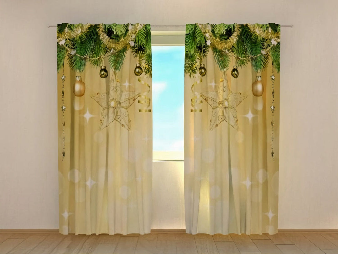 The elegant gold glow and festive decorations depicted on the curtains give the luxury to any room. The pictures show a beautiful combination of gold tones and Christmas motifs that will give your festive celebrations a splendor.