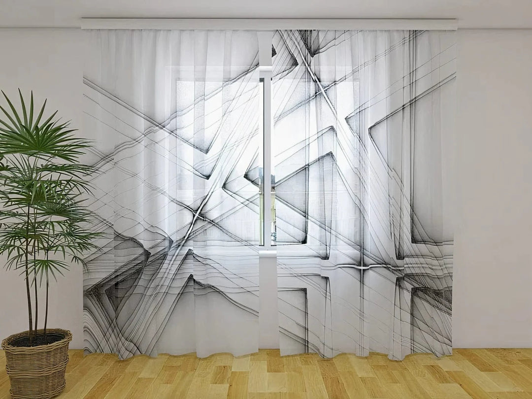 Curtains with abstract design - Abstract black and white lines