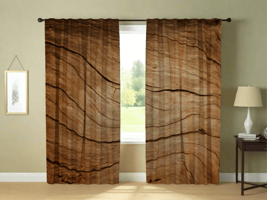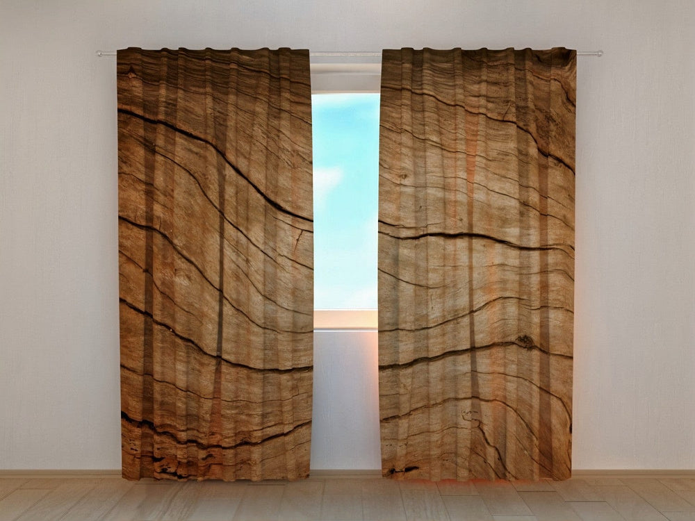 Eleganti aizkari ar dabas motīvu - Vecs ozols - brūnos toņos Tapetenshop.lv