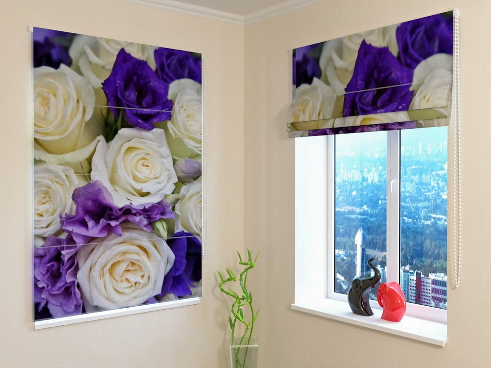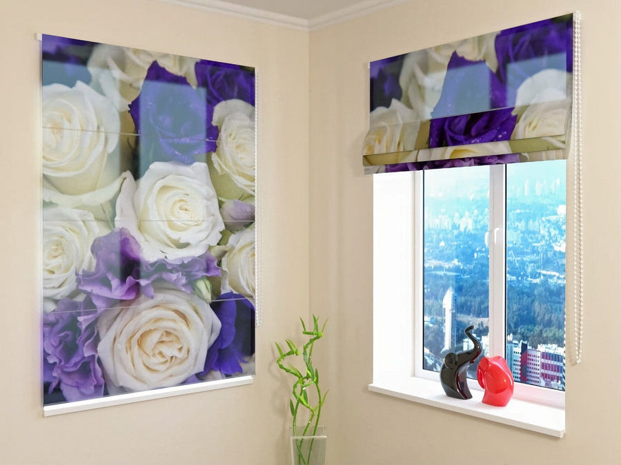 Roman Blinds - Purple and White Rose Bouquet