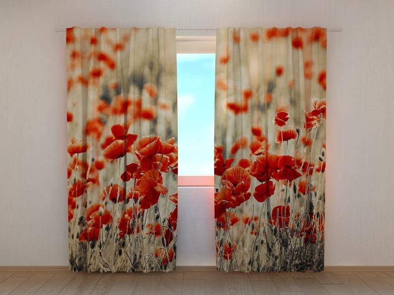 Curtains with floral motifs - Red Poppies and Blue Sky