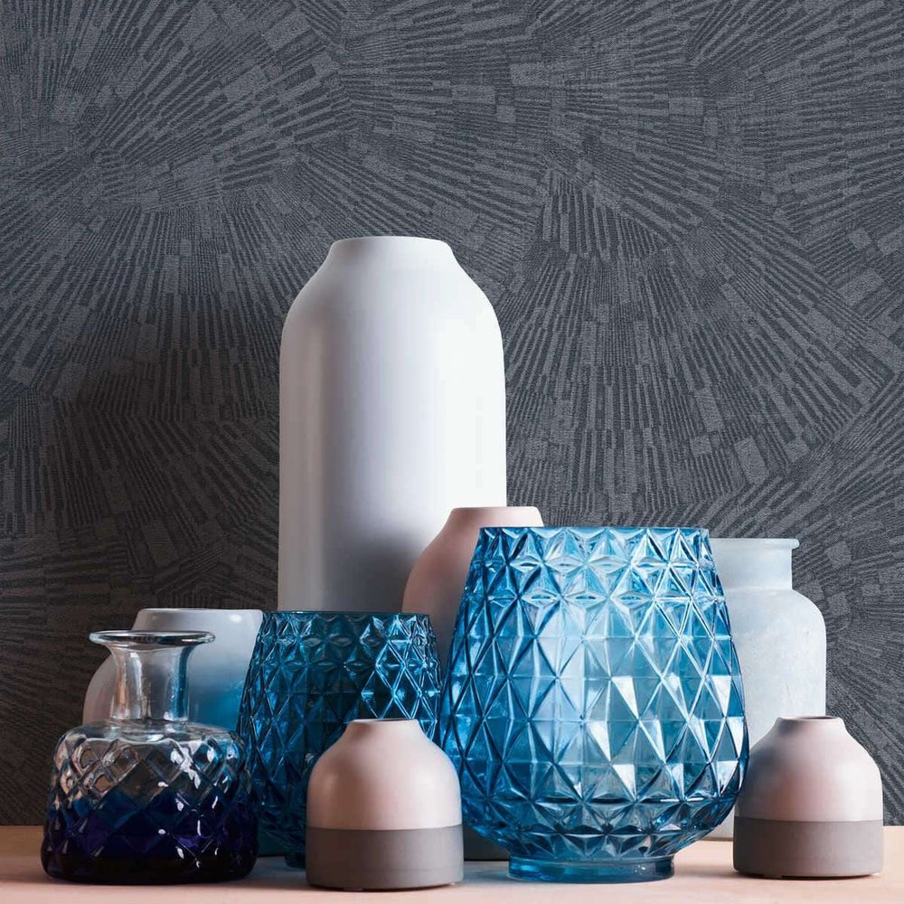 Teksturētas tapetes benzīnzila krāsā ar spīduma efektu AS 381977 Tapetenshop.lv