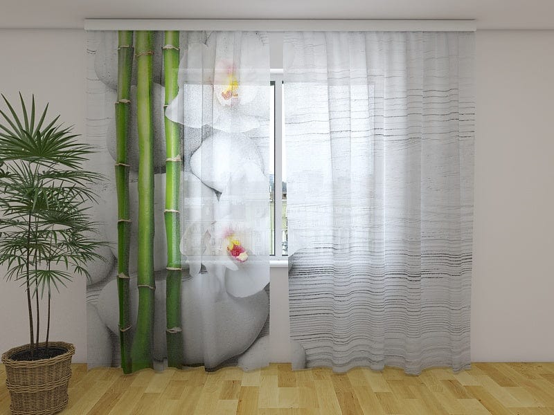 Curtains with an oriental theme - Zen stone with a white butterfly