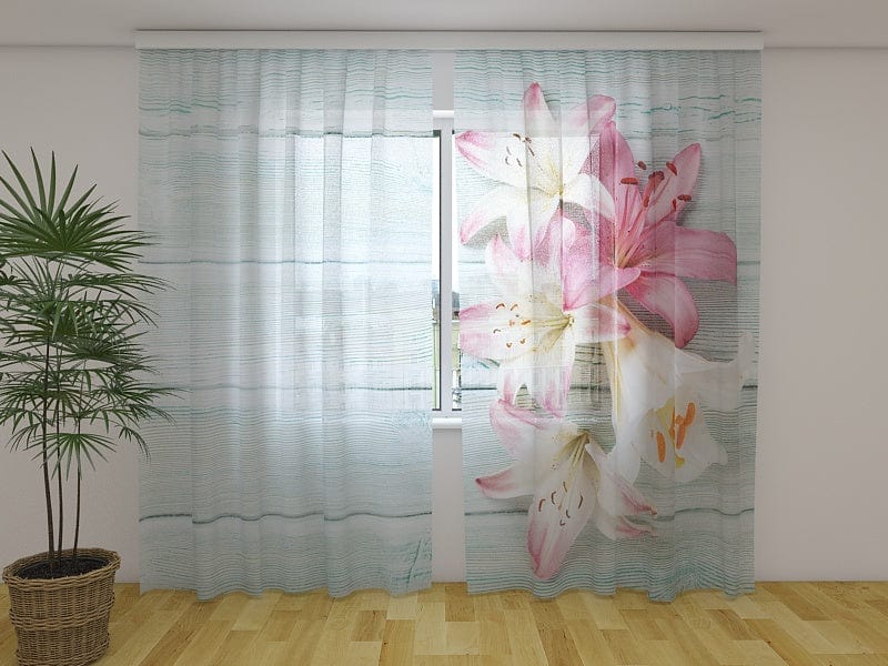 Curtains with flower motifs - Colourful lilies on a tree