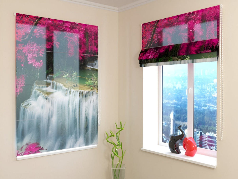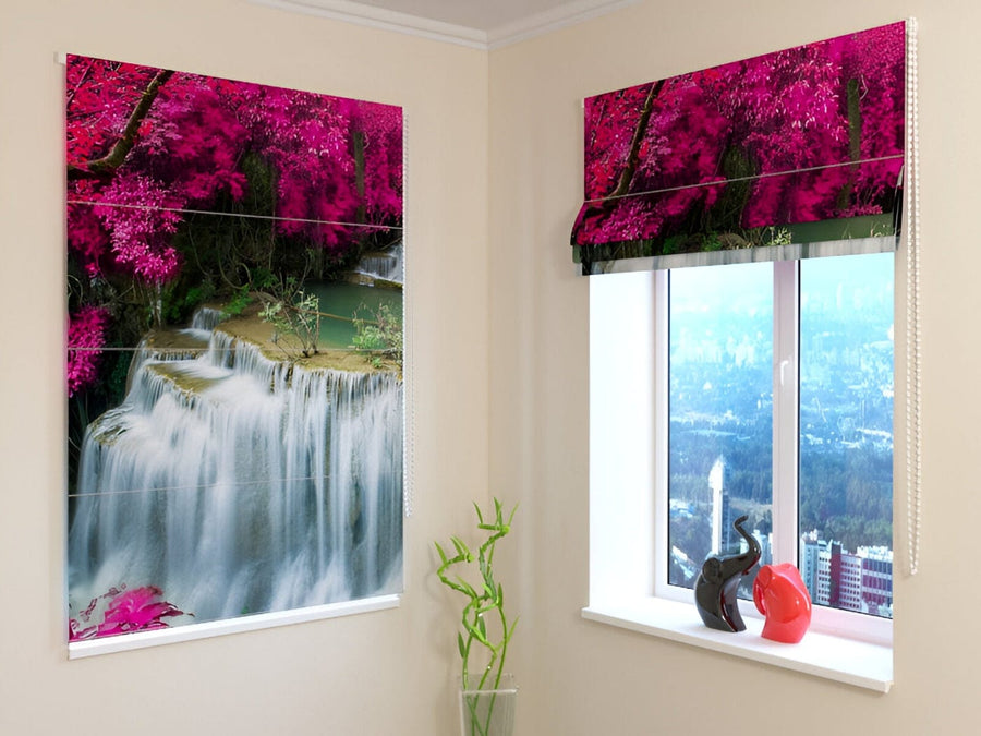 Žalūzijas ar dabas skatu - Košs ūdenskritums - fuksijas krāsā Tapetenshop.lv