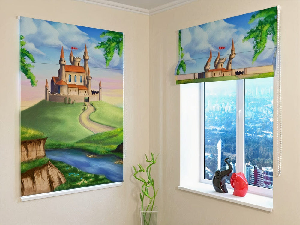Romiešu žalūzijas bērnu istabai - Princeses pils - izgatavošana Tapetenshop.lv