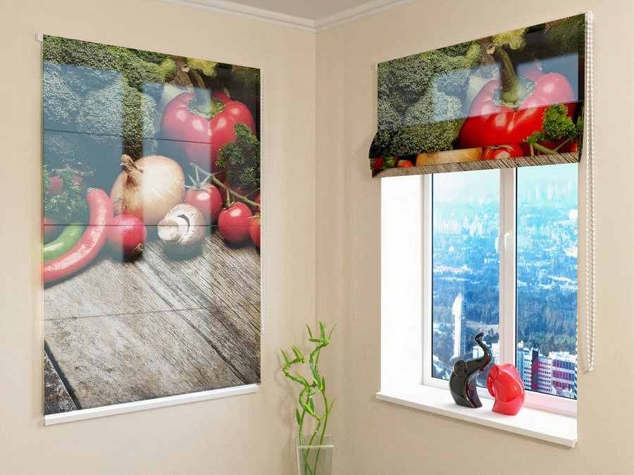 Žalūzijas virtuvei ar krāsainu dārzeņu motīvu - pēc saviem izmēriem Tapetenshop.lv