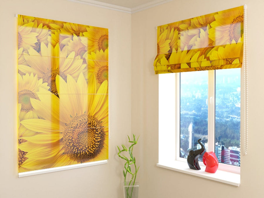 Žalūzijas virtuvei ar ziedu rakstu - Saulespuķes - dzeltenā krāsā Tapetenshop.lv