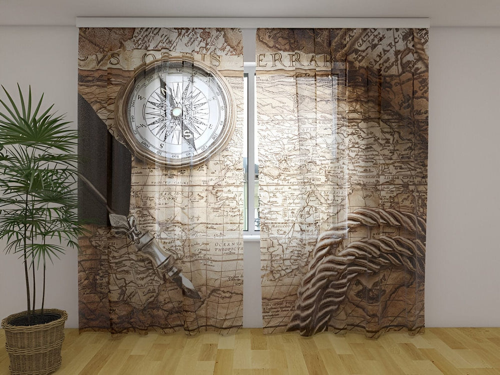 Dienas aizkari guļamistabai - Vintāža karte ar kompasu Tapetenshop.lv