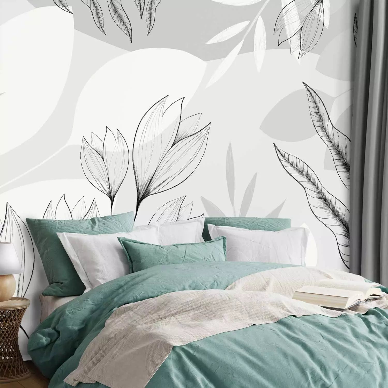 Wall murals - Gray flower and leaf composition, 138804