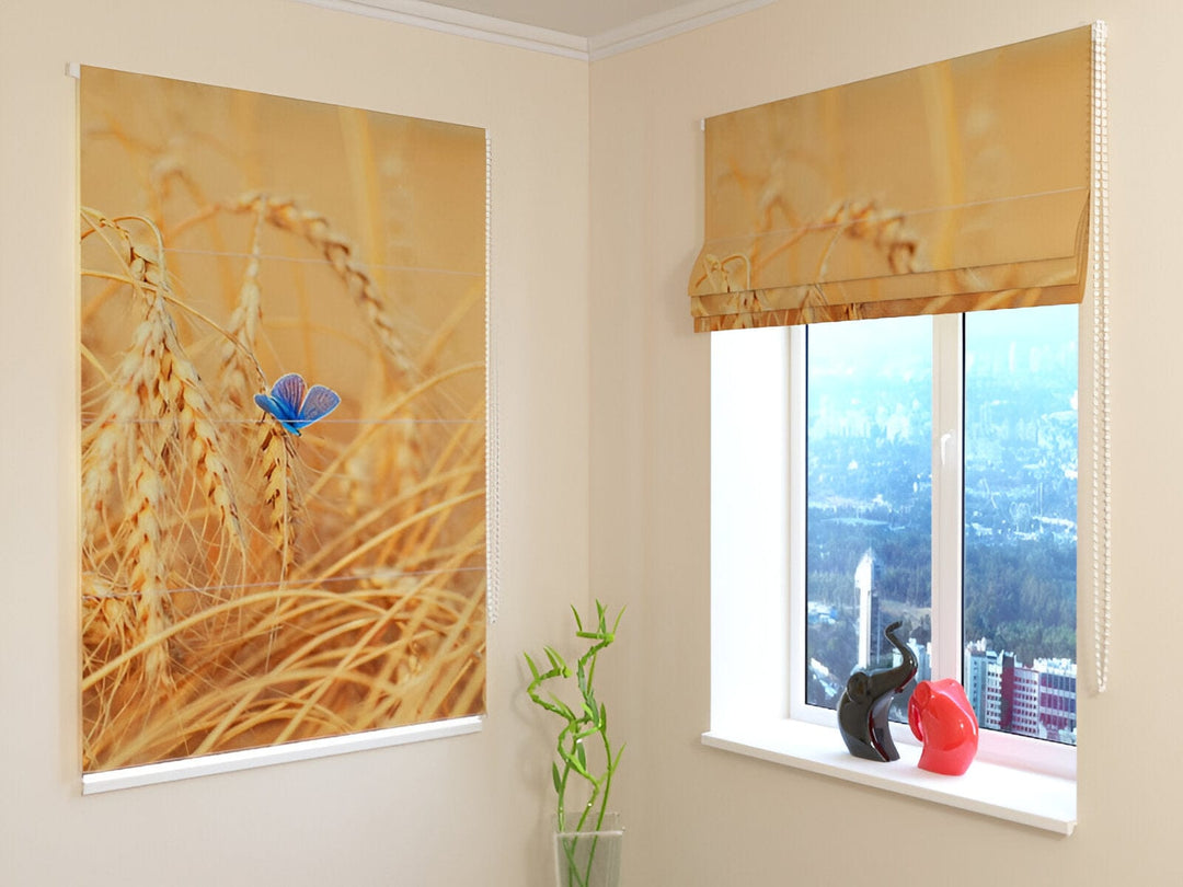 Butterfly blinds - Blue butterfly on a golden wheat field
