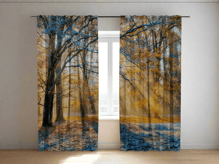Curtains with beautiful nature - Snow in an autumn forest