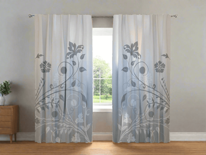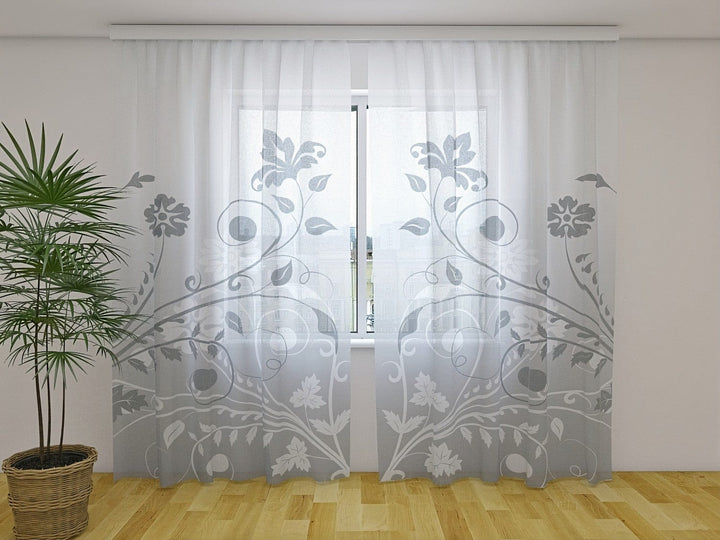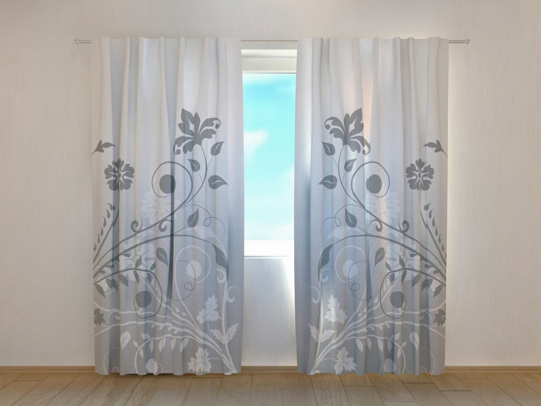 Curtains with abstract flowers - Grey flower abstraction