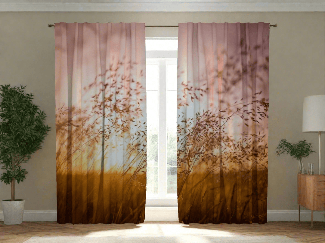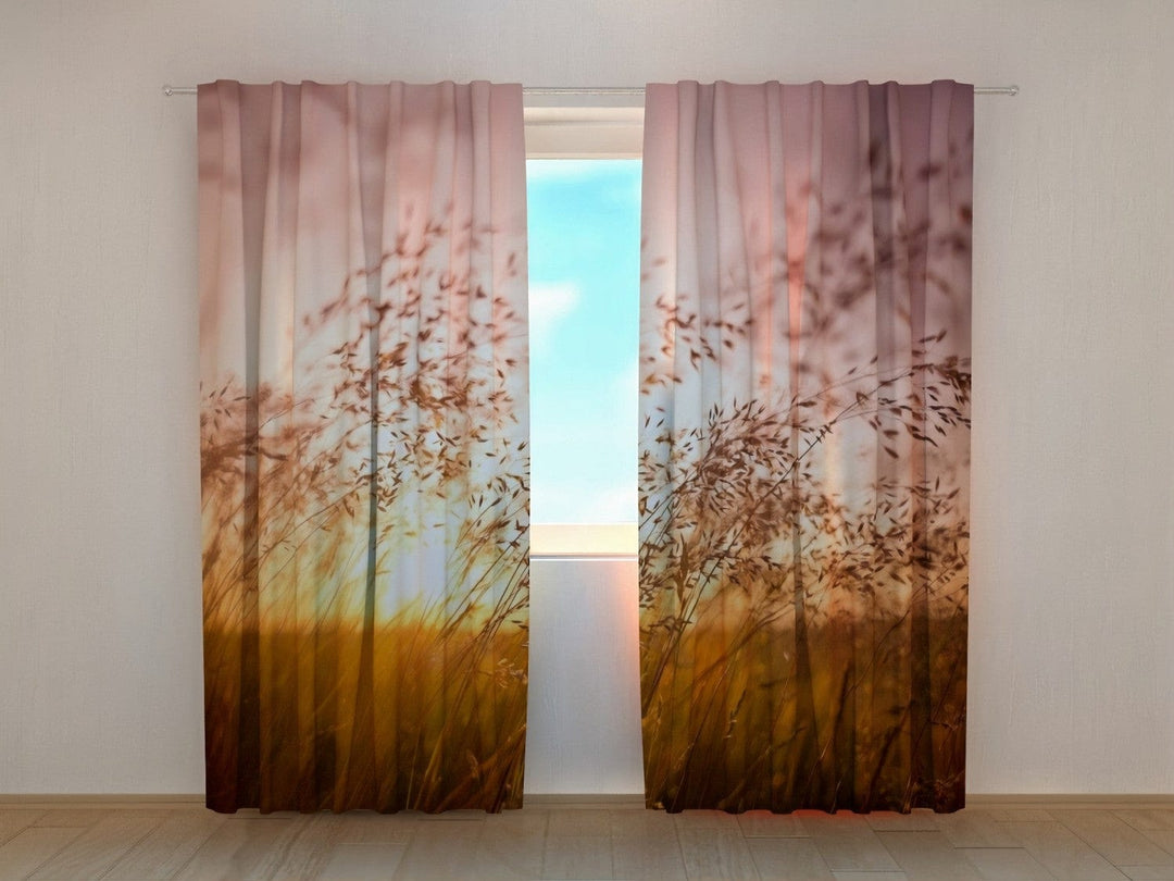 Curtains with nature - Summer sunset over grass
