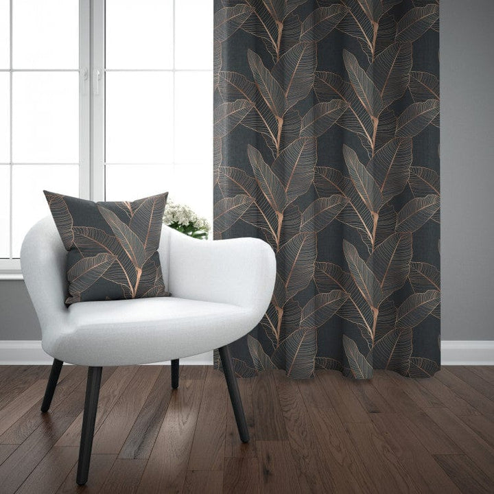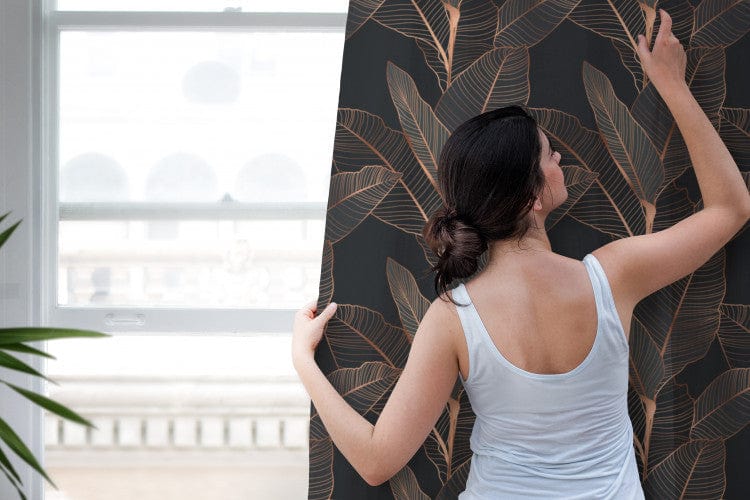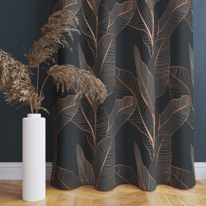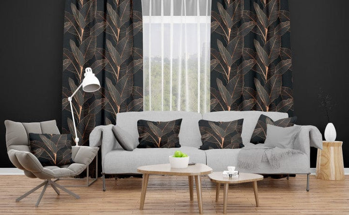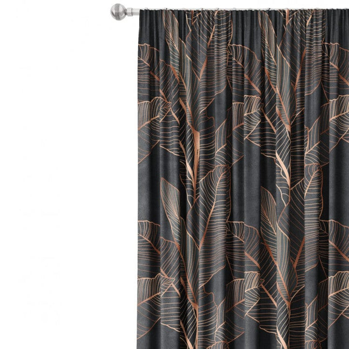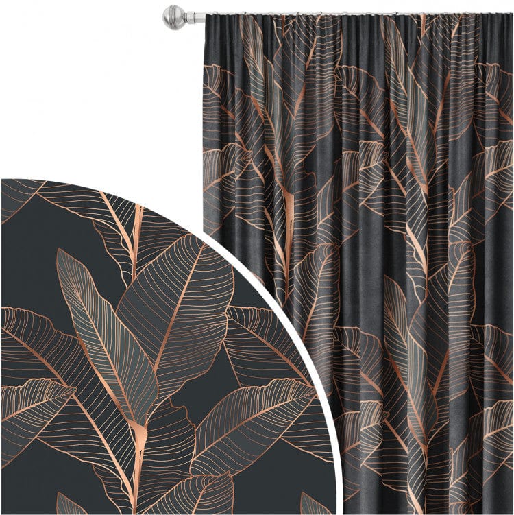 Decorative curtains - composition with ficus gold leaves on a brown background, 147161