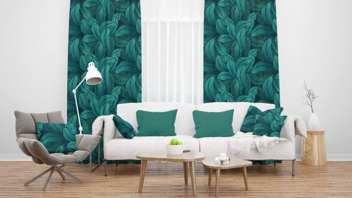 Decorative Curtains - Graphic Flower Pattern in Sea Tones, 147172
