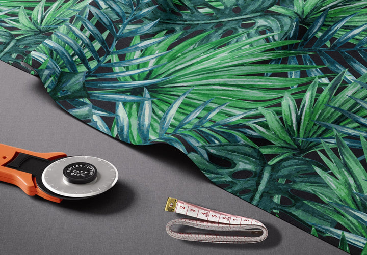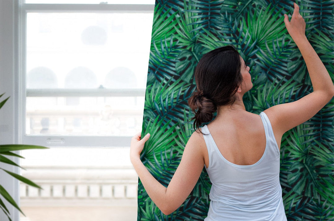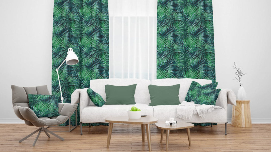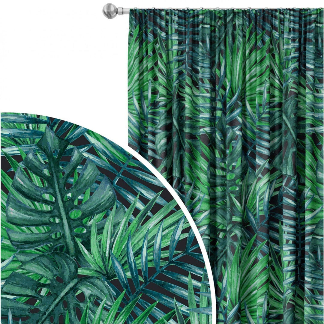 Decorative curtains - palms and leaves, botanical composition, monster green tones