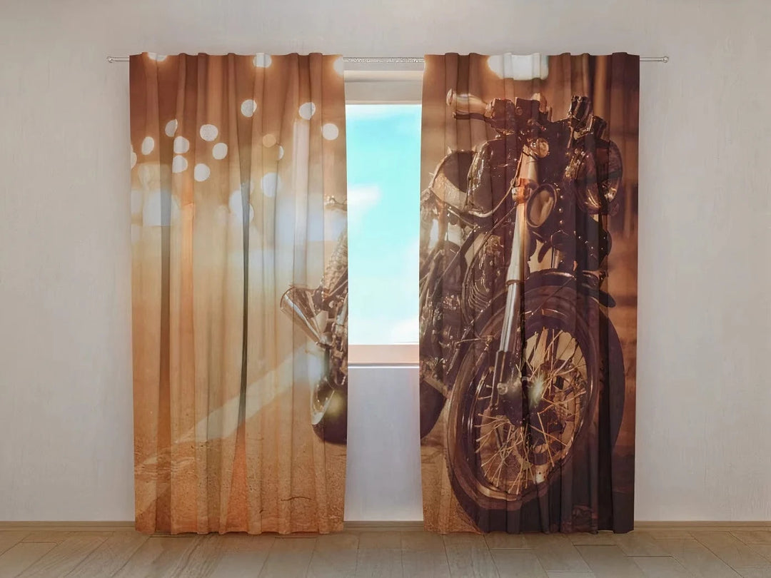 Curtains with motorcycle - Motorcycle on a night road