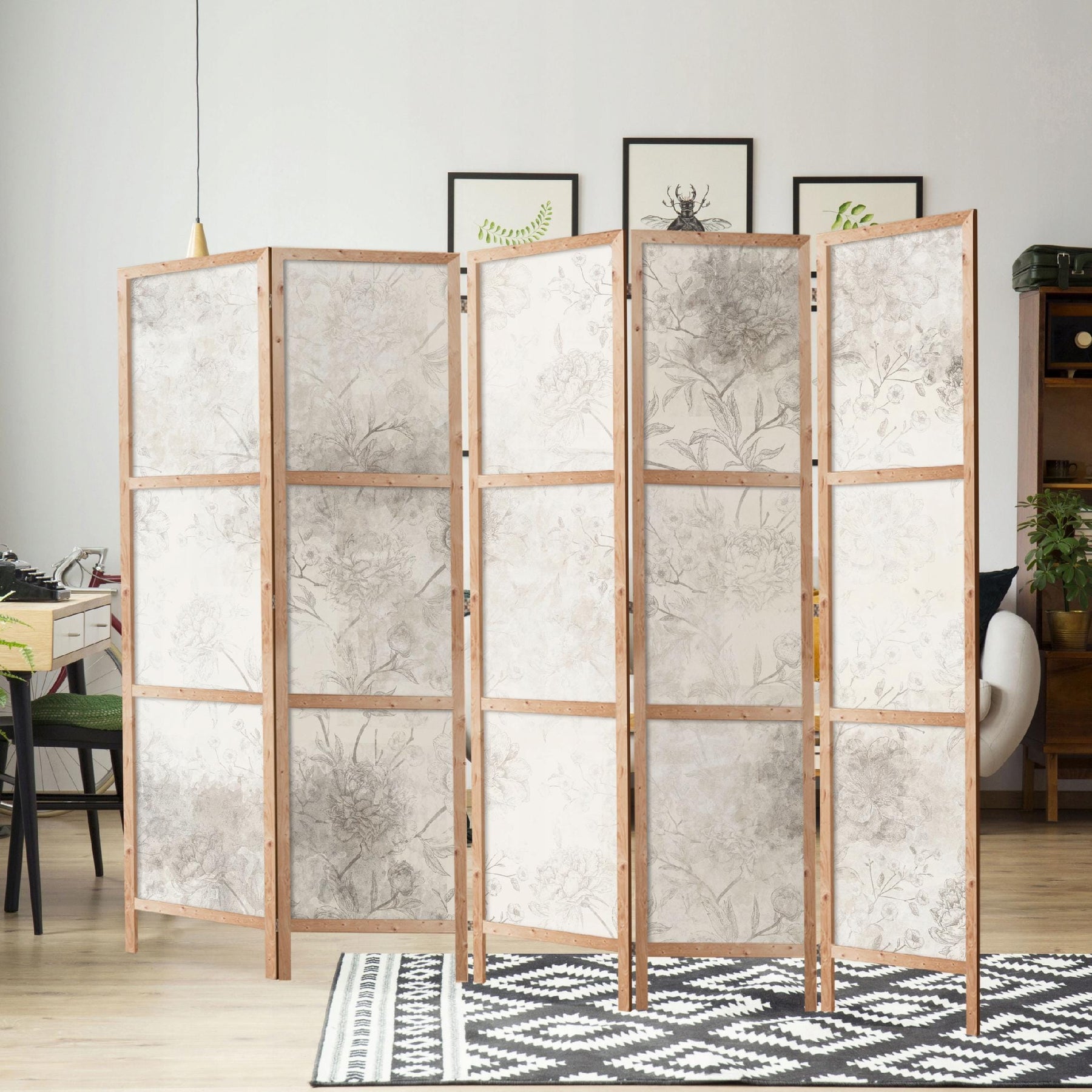 Mõõdud: 135 x 172 cm (3-osaline vahesein) või 225 x 172 cm (5-osaline vahesein).
