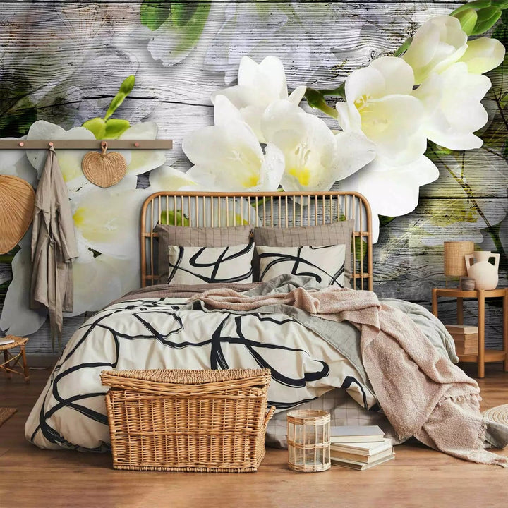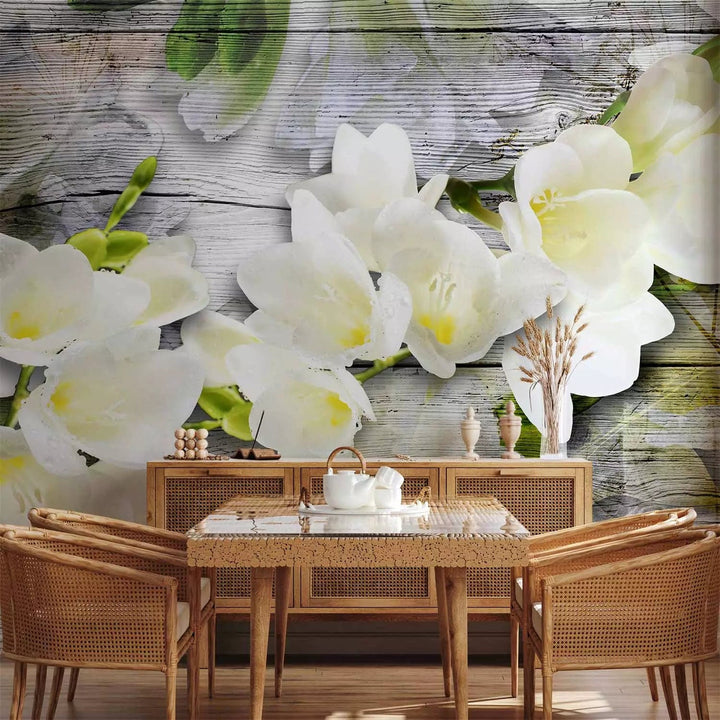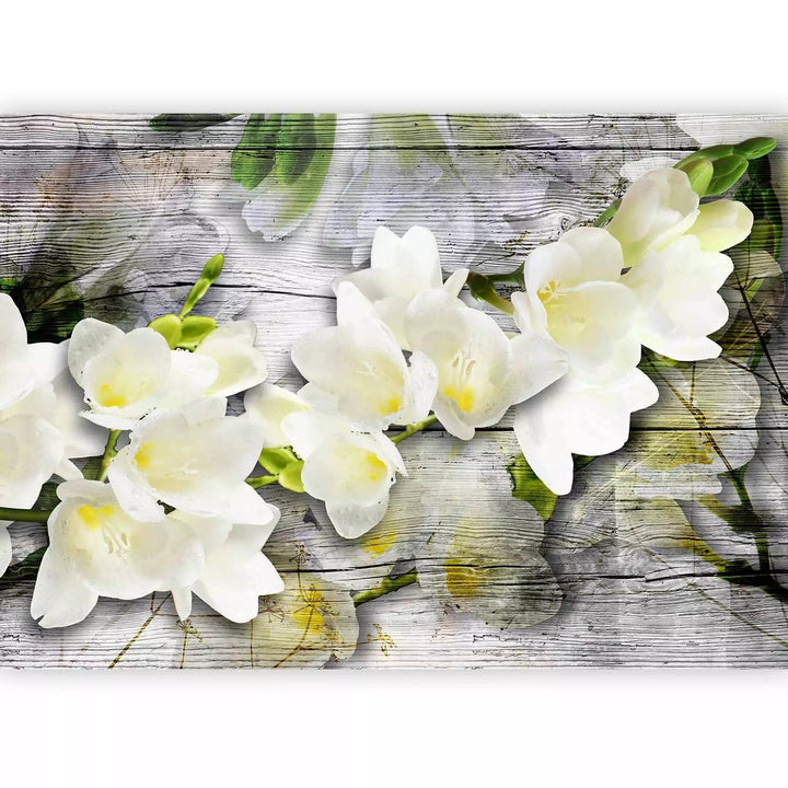 Fototapeet - Valge freesia puidu tekstuuril, 61853