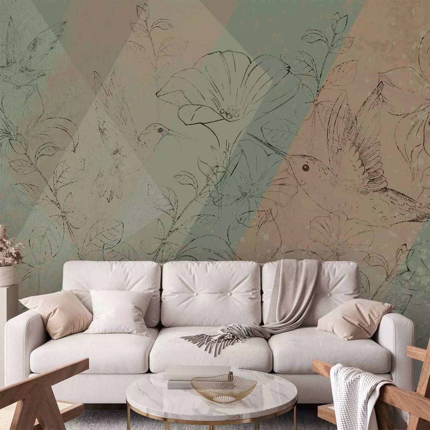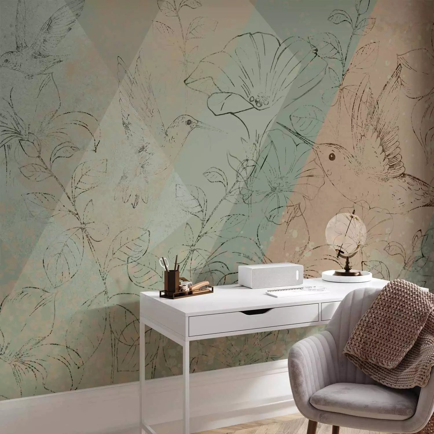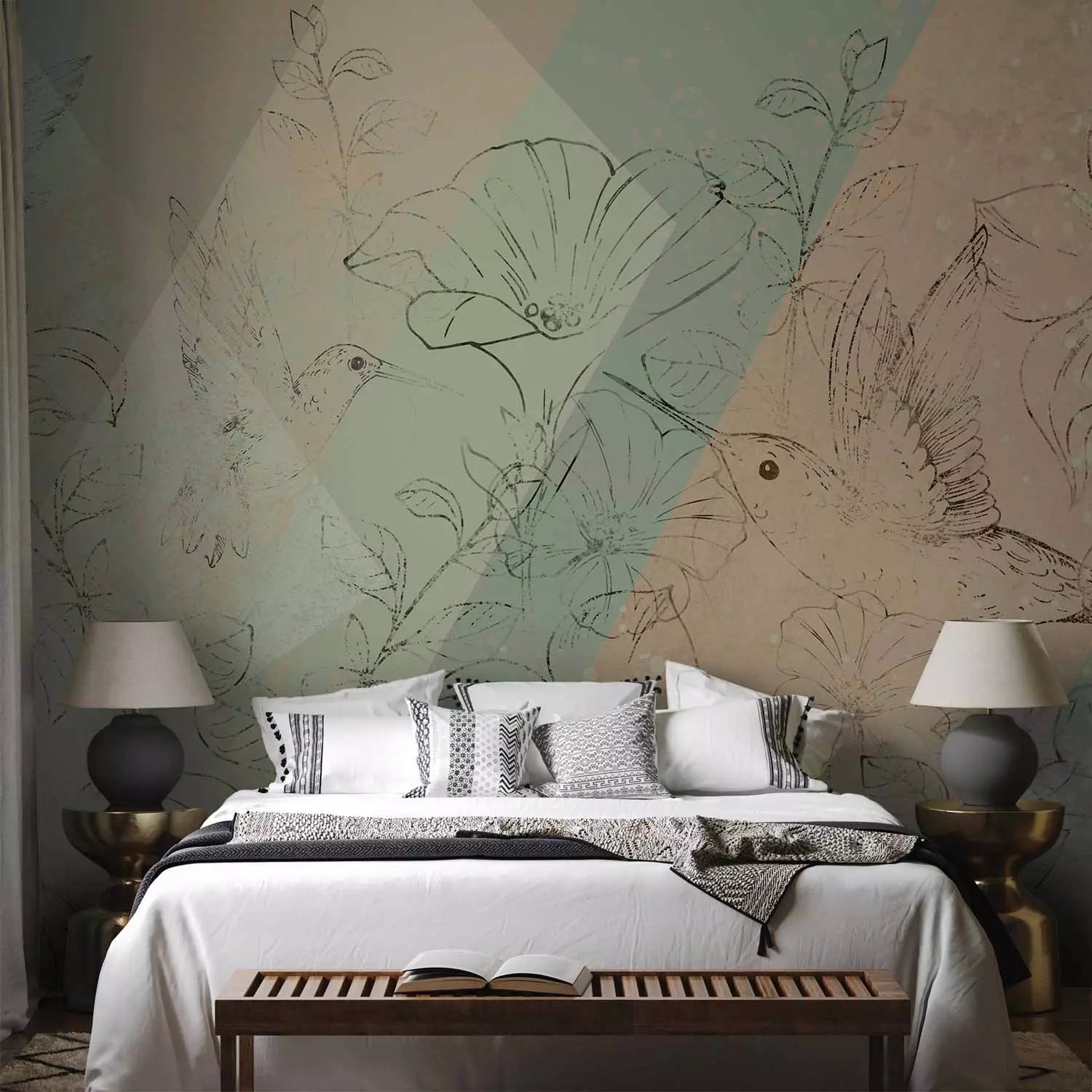 Fototapeet Kolibritega - Kolibrid niidul (rohelised toonid), 146340