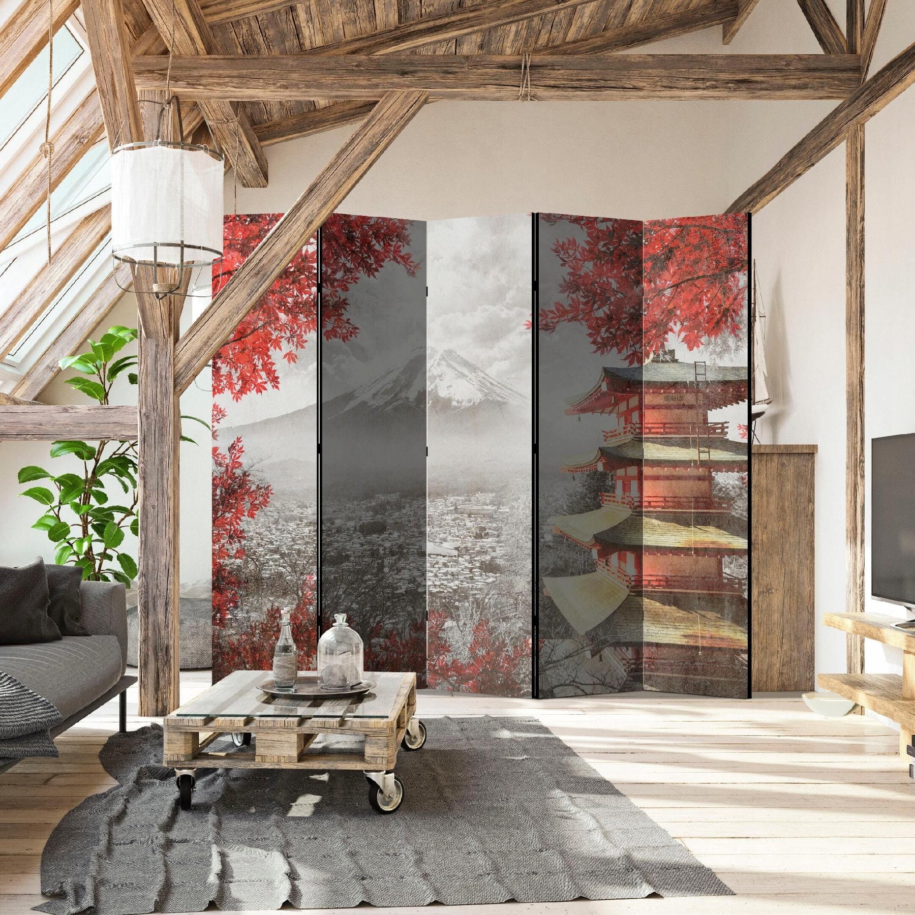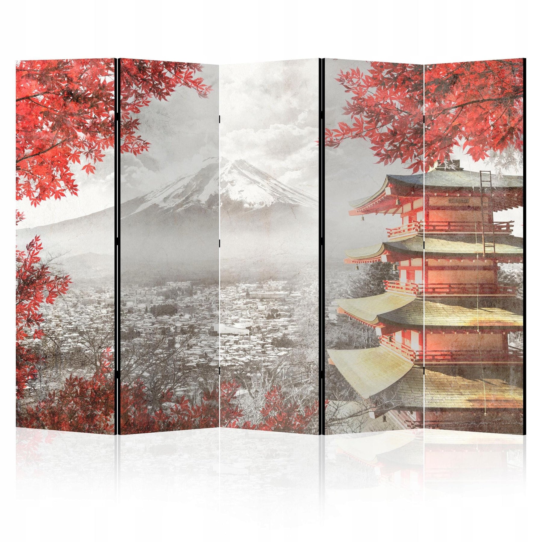 Vienpusējs aizslietnis, 225x172, Austrumu stilā, Japānas ainava, pelēka, sarkana