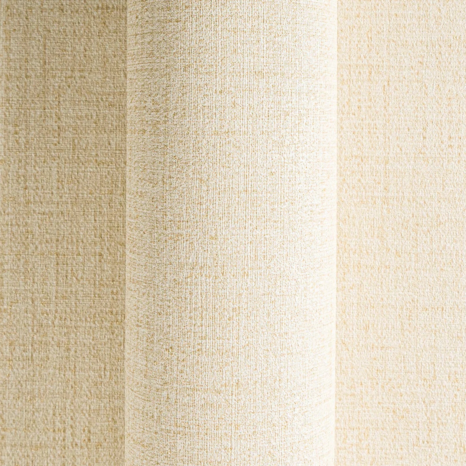 Tapetēm ir ļoti neuzkrītoša, smalka lina tekstūra siltā, baltā tonī ar gaišiem smilšu un krēmkrāsas toņiem. Raksts izskatās kā smalks, teksturēts audums, kas diskrēti izkliedēts pa virsmu un piešķir mīkstu, tekstilijas raksturu. Virsmā ir matēta, kas motīvam piešķir dabisku un mierīgu efektu. Neuzkrītošais dizains un gaišā krāsu gamma rada mūžīgu, minimālistisku stilu, kas telpas padara gaišākas un plašākas un ko var dažādi kombinēt ar dažādiem mēbeļu stiliem. Tapetes rada viegluma un pieticības sajūtu, bet vienlaikus rada patīkamu, mājīgu atmosfēru, pateicoties to smalkajai tekstūrai, nedominējot telpā.