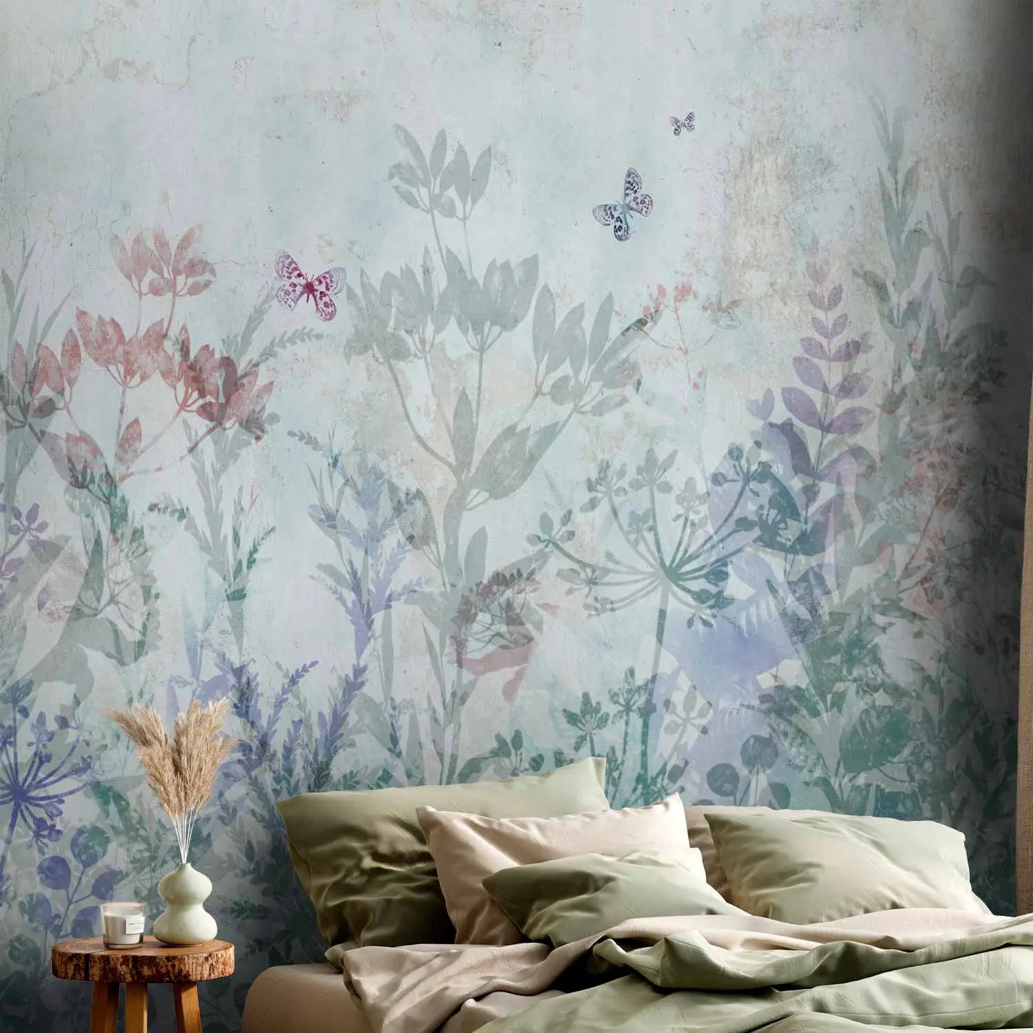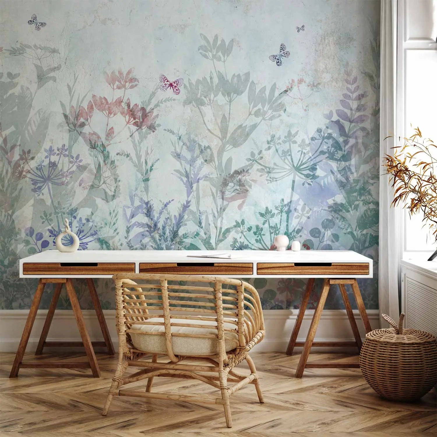 Fototapeet - Suvised niidud | õrnad lilled ja liblikad sinisel taustal, 160907