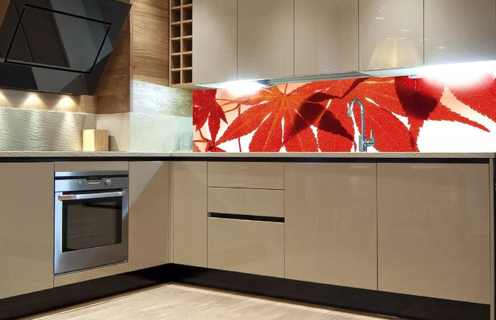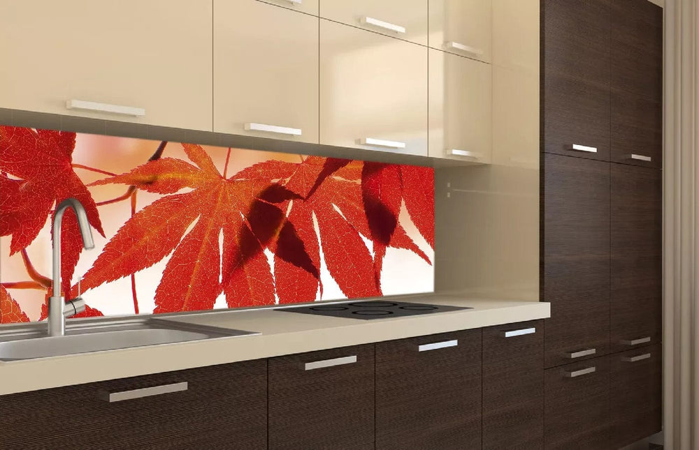 Laminoidut valokuvatapetit keittiöön - Sarkanās lapas (180x60 cm)