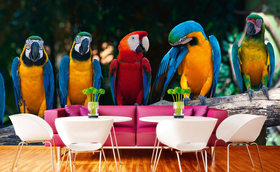 Valokuvatapetti lintujen kanssa - Värikkäät papukaijat