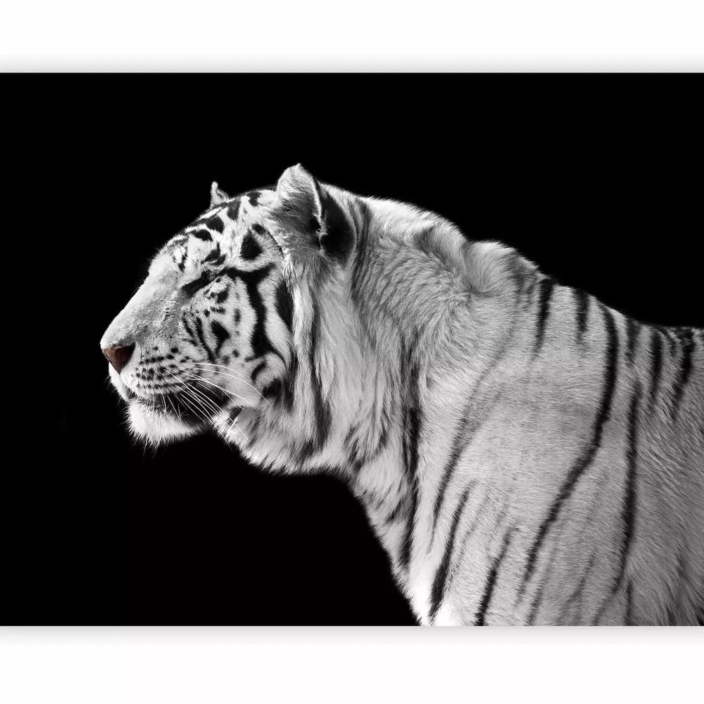 Fototapetes ar balto tīģeri uz melna fona - viesistabai G-ART