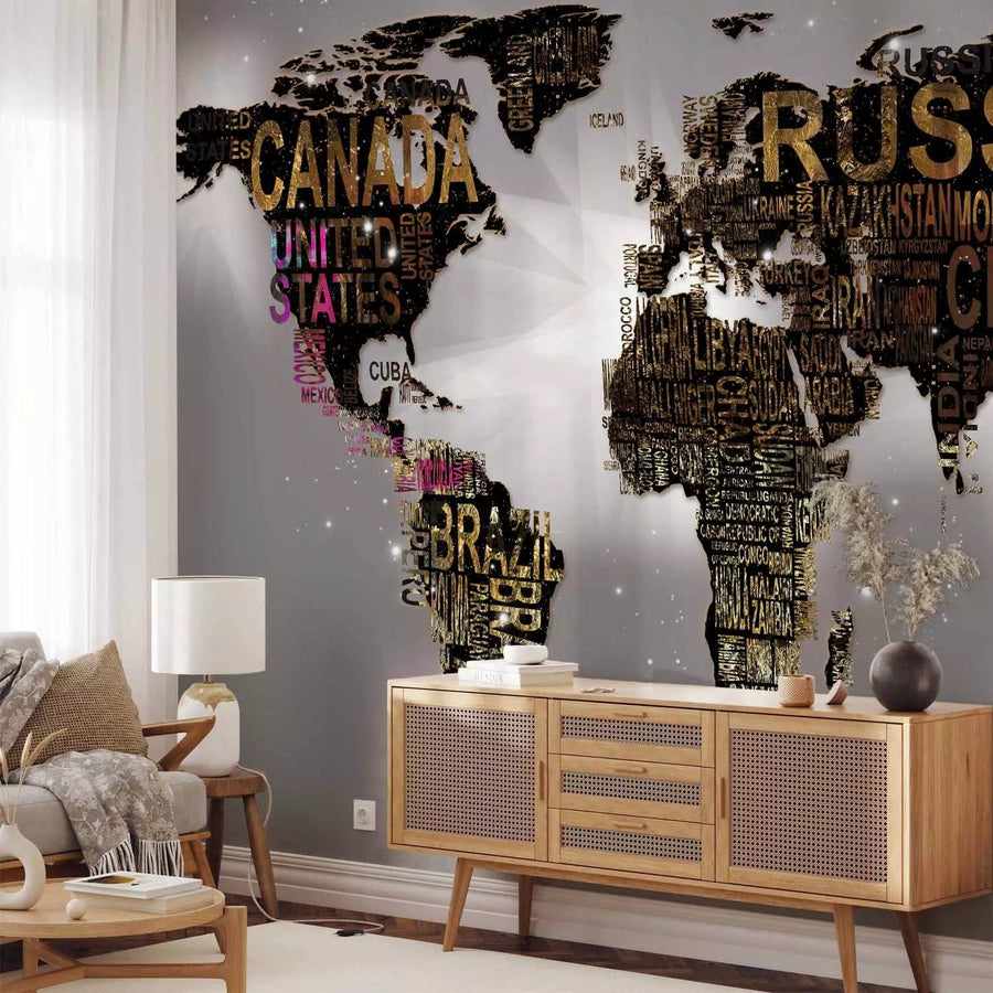 Fototapetes - Moderna pasaules karte ar uzrakstiem brūnā pelēkā krāsa G-ART