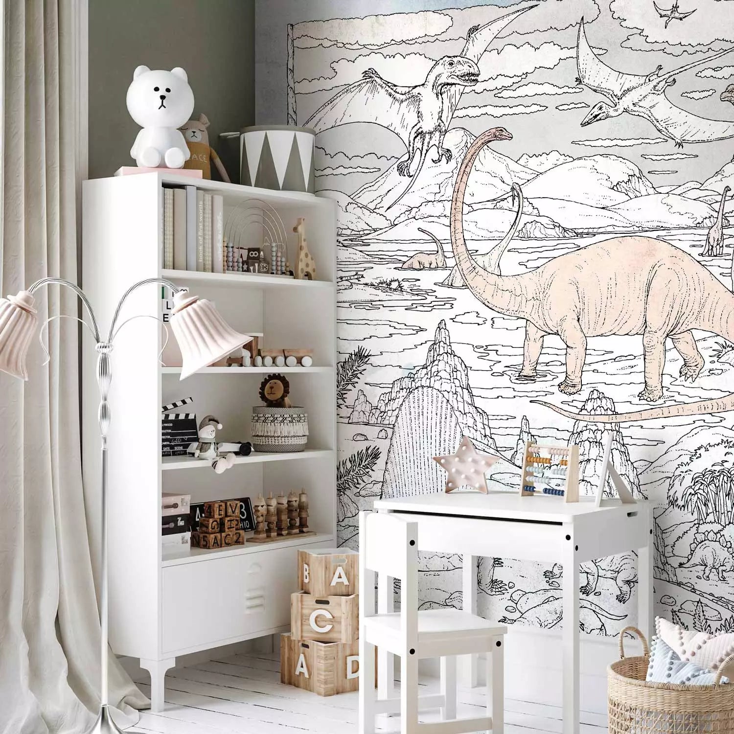Valokuvatapetti – pastelliväreillä piirretyt dinosaurukset, 149238